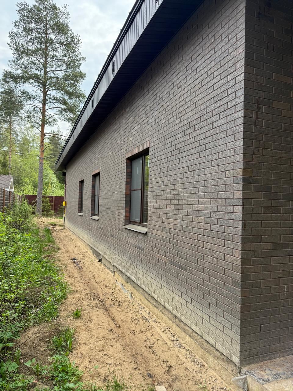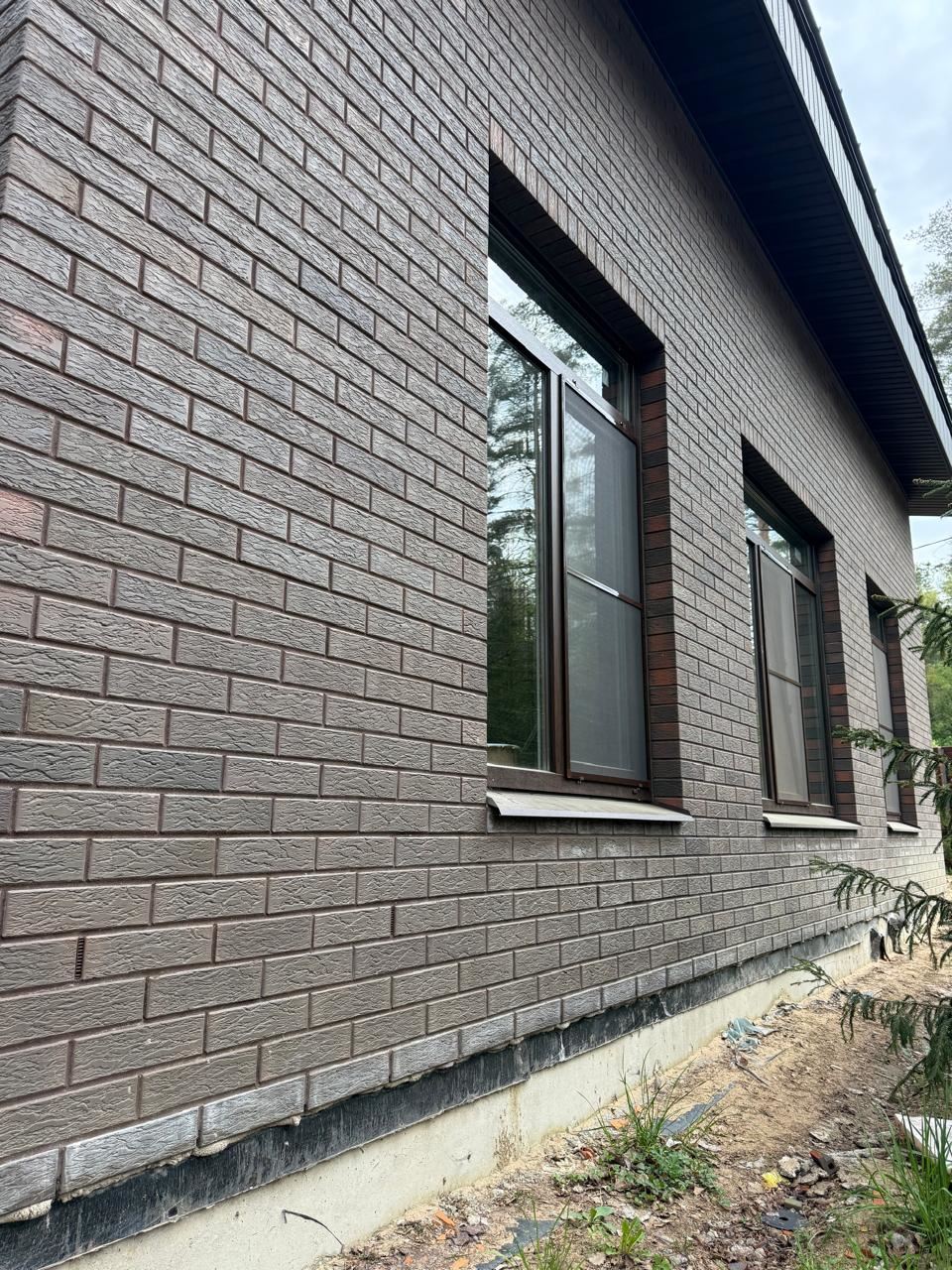 Одноэтажный дом, облицованный кирпичом 1НФ Графит Лава из коллекции 2025 года.