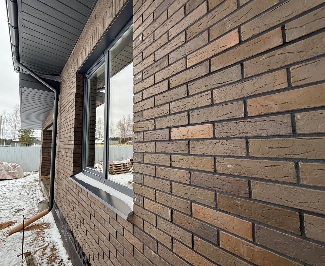 Одноэтажный дом, облицованный кирпичом 1НФ Графит Бук из коллекции 2025 года.